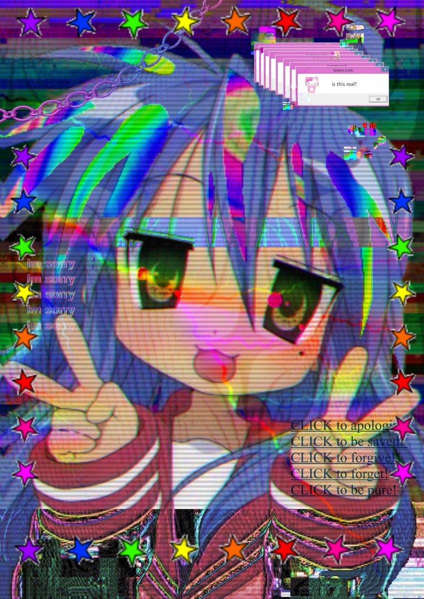 If you discover this site serviceableness, please support us by sharing this posts to your preference social media accounts like Facebook, Instagram and so on or you can also Download this blog page with the title Lucky Star Glitchcore by using Ctrl + D for devices a laptop with a Windows operating system or Command + D for laptops with an Apple operating system. If you use a smartphone, you can also use the drawer menu of the browser you are using. Whether it's a Windows, Mac, iOS or Android operating system, you will still be able to bookmark this website.